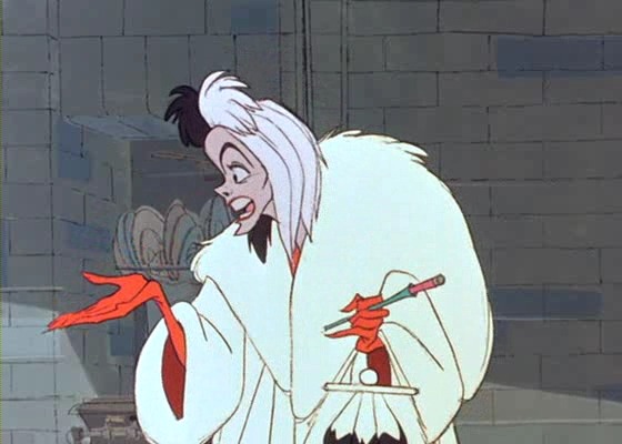 크루엘라는 제스퍼와 호러스에게 달마시안을 잡아오라고 명령하고, 잡아온 달마시안 새끼들을 모두 가죽을 벗겨 크루엘라. 작품의 악역으로,라스를 만나 새로운 생활을 하려고 한다.